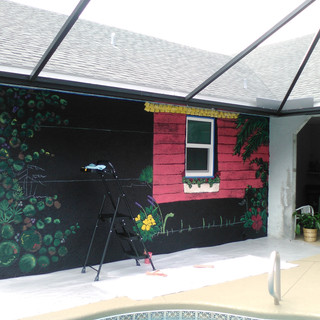Earlier this year a client approached me about doing an art piece for a wall out by her pool. We bounced around a few ideas, but she didn't seem to feel like any of them fit. She then asked me how I would feel about doing a mural. As I had never done a mural before, I was apprehensive to commit to it. As we talked though and I understood what she wanted and I researched mural paintings and techniques, I got super excited and we started planning! Here are the pics from the project...